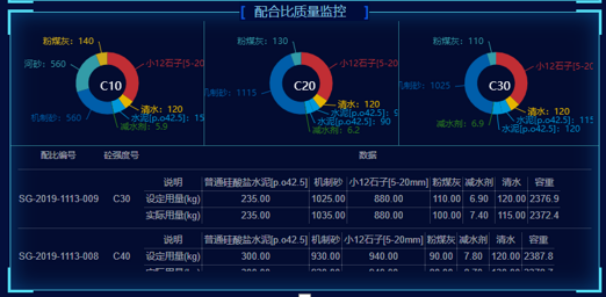 可以監(jiān)控生產(chǎn)過(guò)程中的骨料配比、水泥量、粉煤灰量、水膠比、拌合產(chǎn)量、摻配比等各項(xiàng)數(shù)據(jù),并具有實(shí)時(shí)誤差報(bào)警的特色功能,同時(shí)可以根據(jù)實(shí)驗(yàn)室配比、生產(chǎn)配比的優(yōu)化,對(duì)常用不同型號(hào)的混凝土強(qiáng)度進(jìn)行自動(dòng)優(yōu)化推薦。