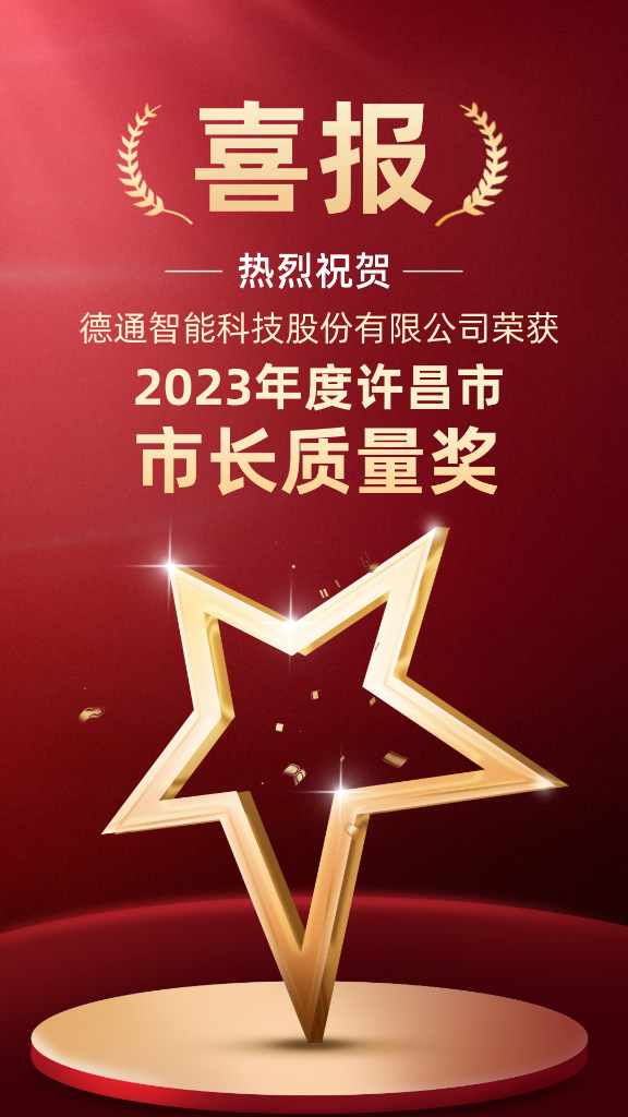 德通智能科技股份有限公司榮獲“2023年度許昌市市長(zhǎng)質(zhì)量獎(jiǎng)”!