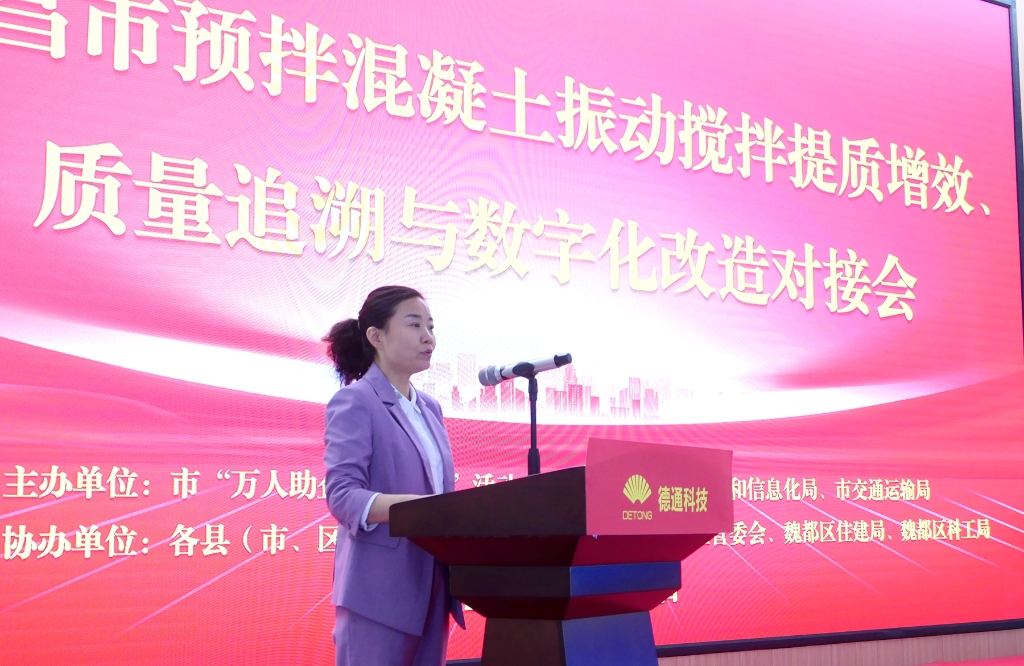 10月20日上午,許昌市預(yù)拌混凝土振動(dòng)攪拌提質(zhì)增效、質(zhì)量追溯與數(shù)字化改造對(duì)接會(huì)在德通智能科技股份有限公司舉行,市“萬(wàn)人助企聯(lián)鄉(xiāng)幫村”活動(dòng)辦公室、市住建局、工信局、交通局及各縣區(qū)相關(guān)部門領(lǐng)導(dǎo),全市商砼企業(yè)負(fù)責(zé)人參加會(huì)議。