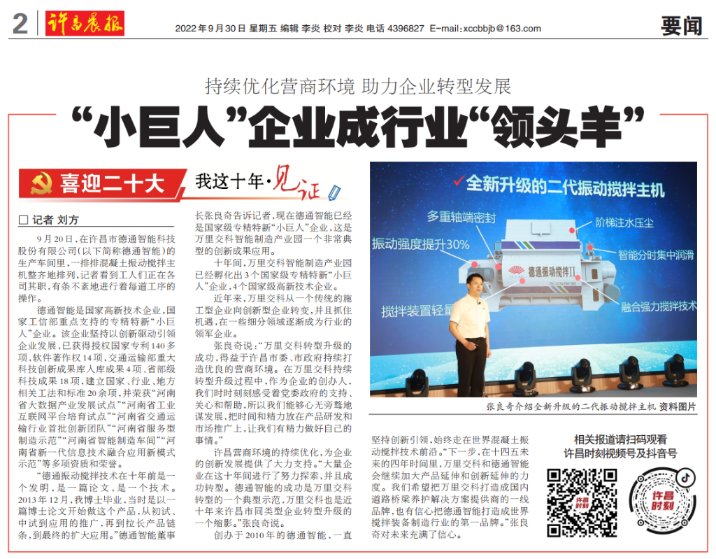 讓混凝土“蹦迪”,你沒聽錯?在河南許昌5G應(yīng)用示范基地,德通振動攪拌科技股份有限公司首創(chuàng)的振動攪拌混凝土成套技術(shù)